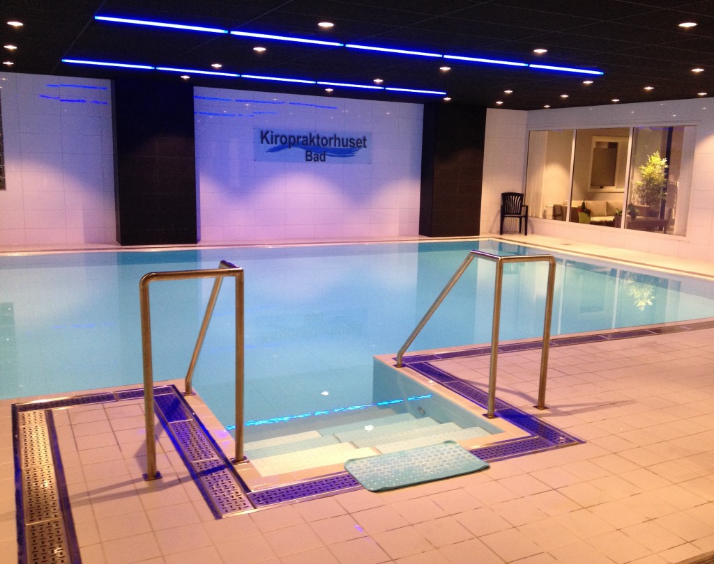 Vi tror att vi har stans bästa varmvattenbassäng. Våra gäster uppskattar det centrala läget, den trevliga miljön och den härliga temperaturen i vattnet, 32-33 grader. Bassängen är 12×7 meter och 125-150 cm djup med integrerad sittavdelning. Omklädningsrummen har låsbara skåp (eget hänglås) och bastu. Vill du köra vattengympa i någon av våra grupper?